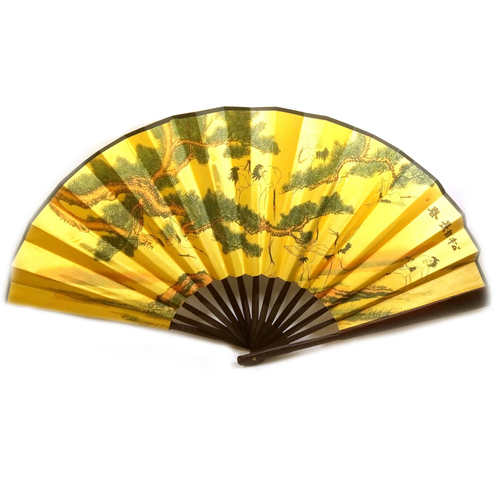 Bamboo fan with silk "Cranes" in a box (33 cm)