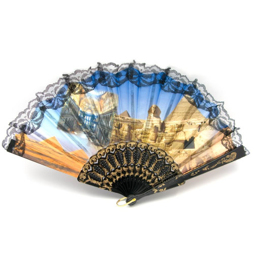 Black lace fan "Egypt" (24 cm)(12 pcs/pack)