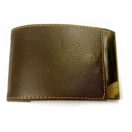 Dark brown leather business card holder with magnetic lock (10x6.5x1.5 cm)