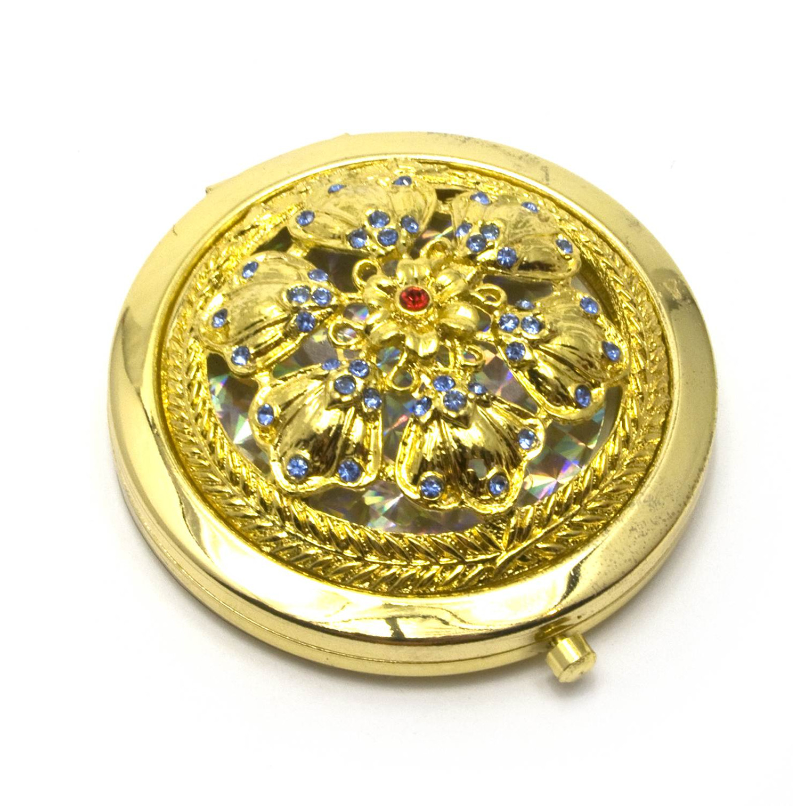 Cosmetic mirror "Pattern with stones" gold (d-7 cm) (in a box + case)