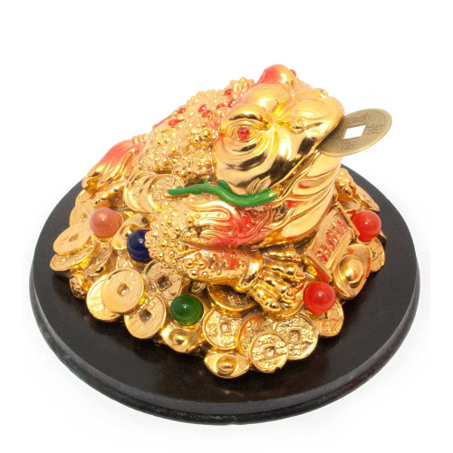 Toad on coins with "gold" stones (13.5x13.5x8.5 cm)