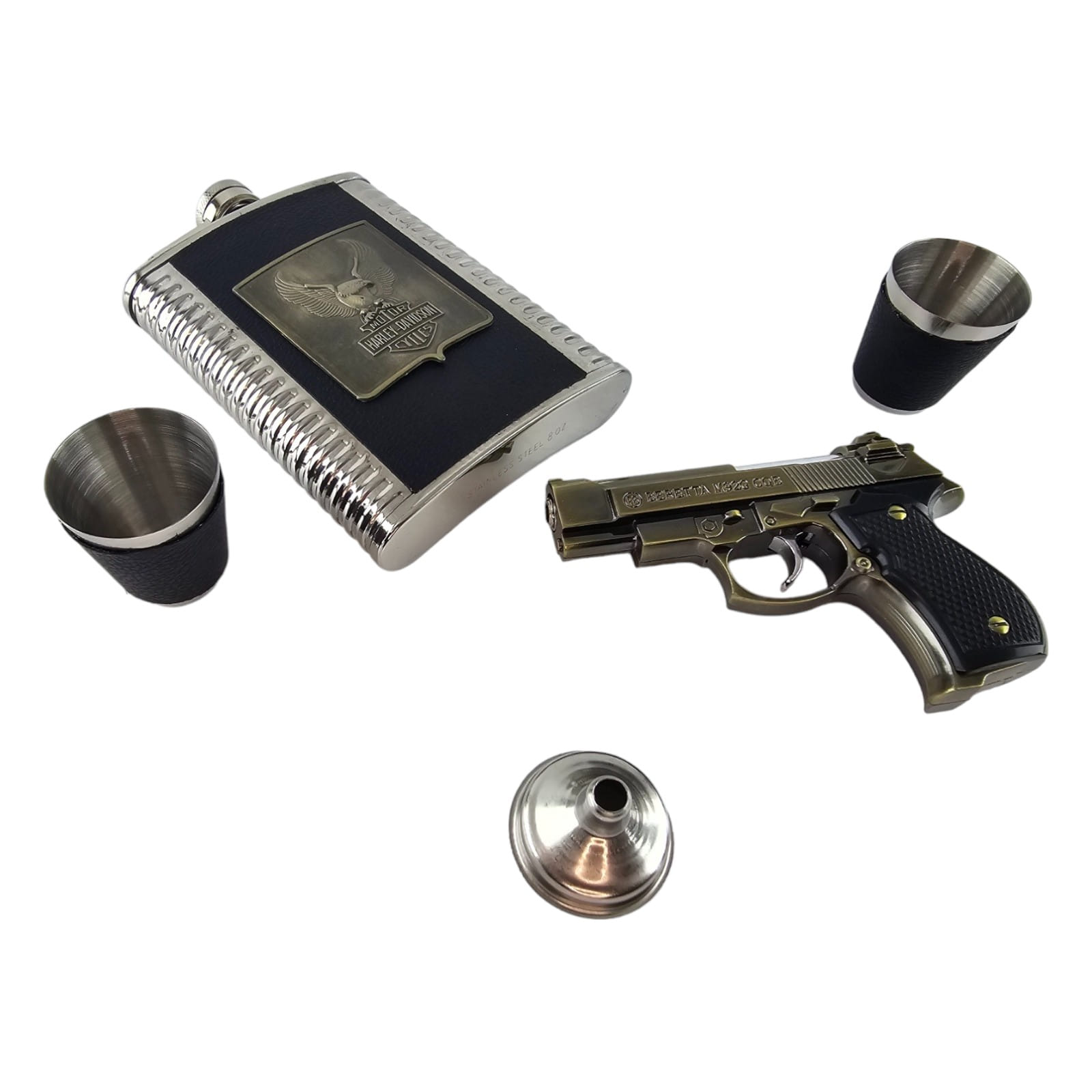 Окунитесь в атмосферу приключений с этим уникальным набором для истинных любителей стиля и азарта. Изготовленный из нержавеющей стали и обтянутый материалом под кожу, этот набор является идеальным компаньоном для вашего приключенческого духа.