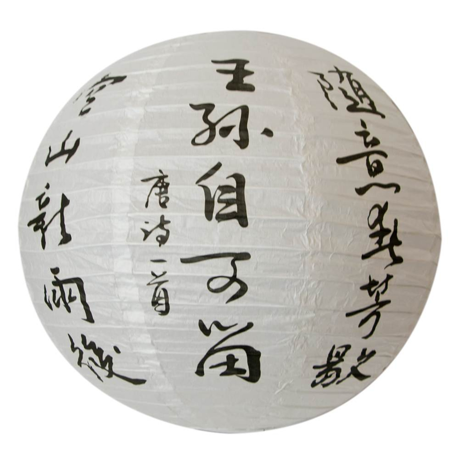 Фонарь белый бумажный "Иероглифы" (d-40 см)