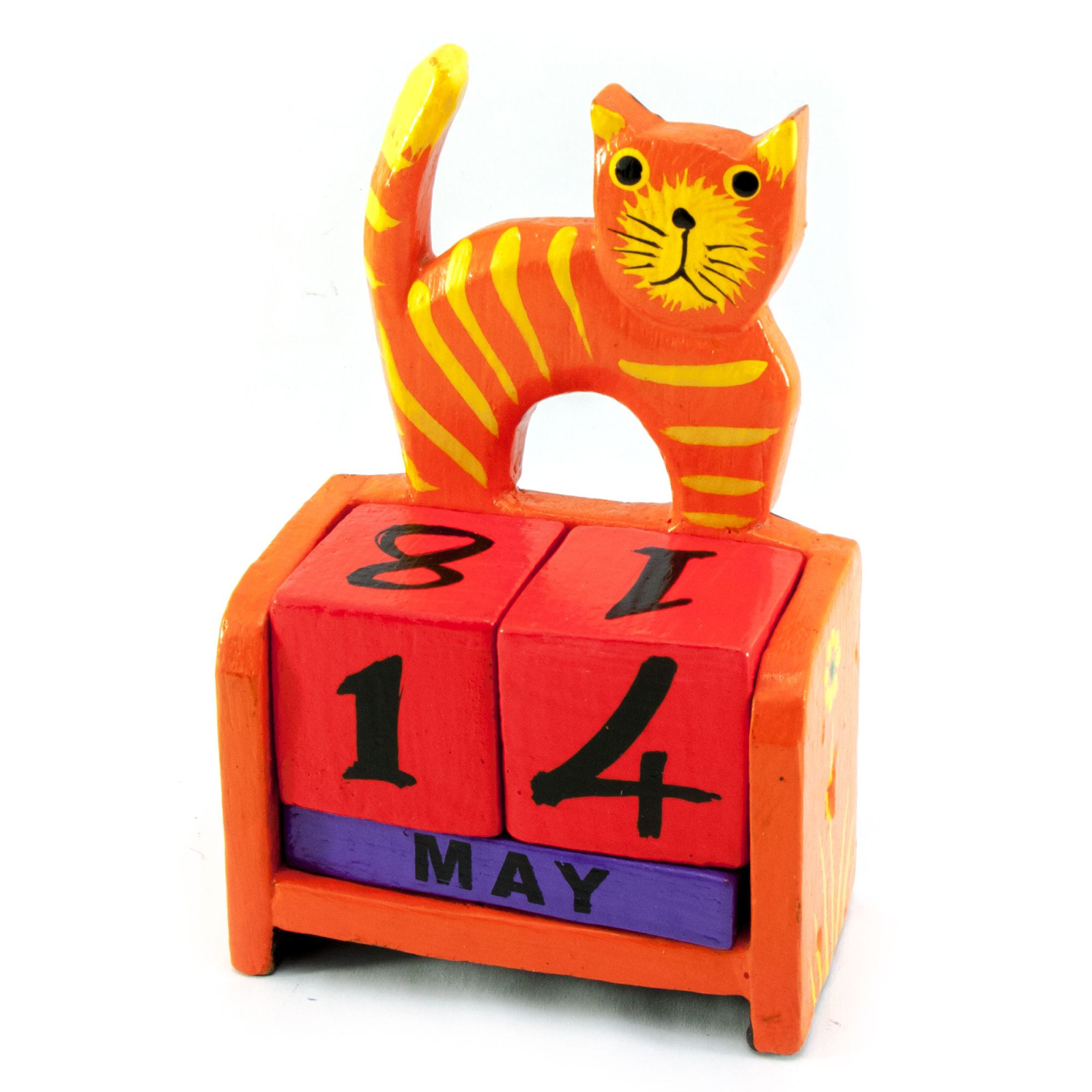 Характеристики Вечный календарь "Кот" дерево оранжевый (14,5х10х5,5 см)