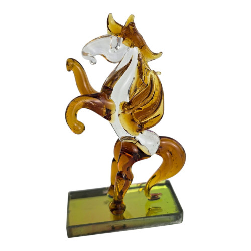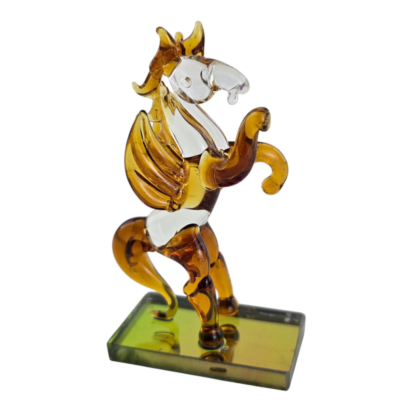 Миниатюрный Пегас из прозрачного янтарного хрусталя на стеклянной подставке. Фигурка выполнена вручную, поэтому возможны едва заметные различия в оттенке и деталях.