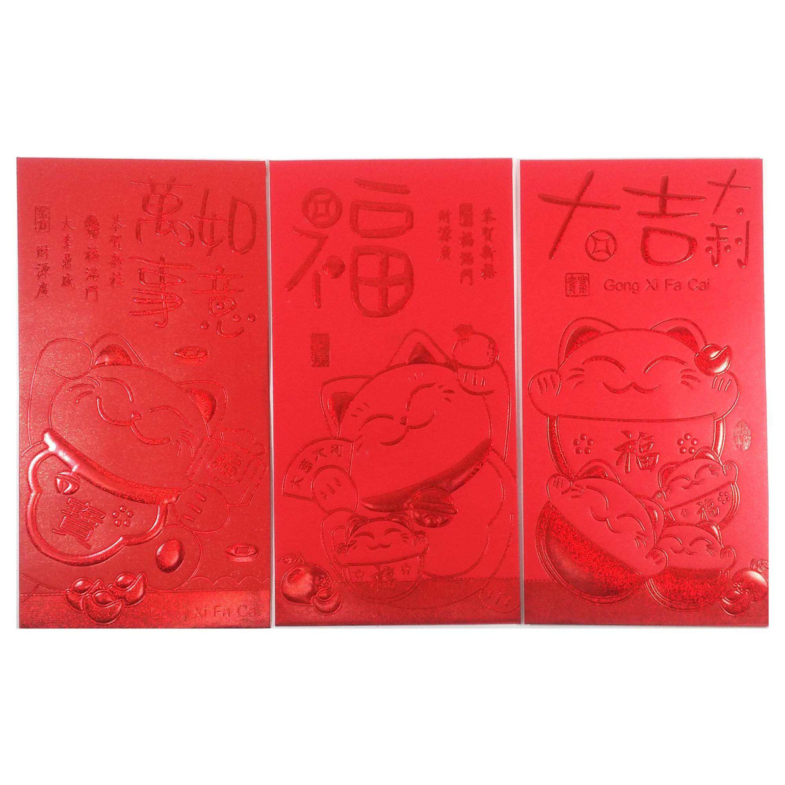 Конверт для денег красный "Манэко Нэко" (6 шт/уп)(8,7х16,7 см)