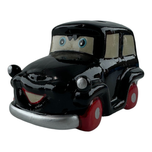 Эта очаровательная керамическая копилка выполнена в виде черного ретро-автомобиля с забавными глазами и широкой улыбкой. Прекрасный декоративный элемент и функциональный аксессуар для хранения мелочи. Изделие имеет съёмную резиновую вставку на дне, благодаря чему монетки можно легко достать, не разбивая копилку.