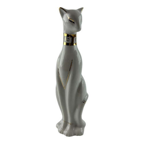 Фарфоровая кошка украшена изящными золотыми деталями на шее и ушках, что придает ей особое благородство и привлекает внимание к тонким линиям фигурки. Она станет прекрасным подарком для ценителей изящных предметов декора, символизируя утонченность и благополучие. Этот декоративный элемент легко впишется как в классический, так и в современный интерьер, добавив нотку стиля и шарма в ваш дом.