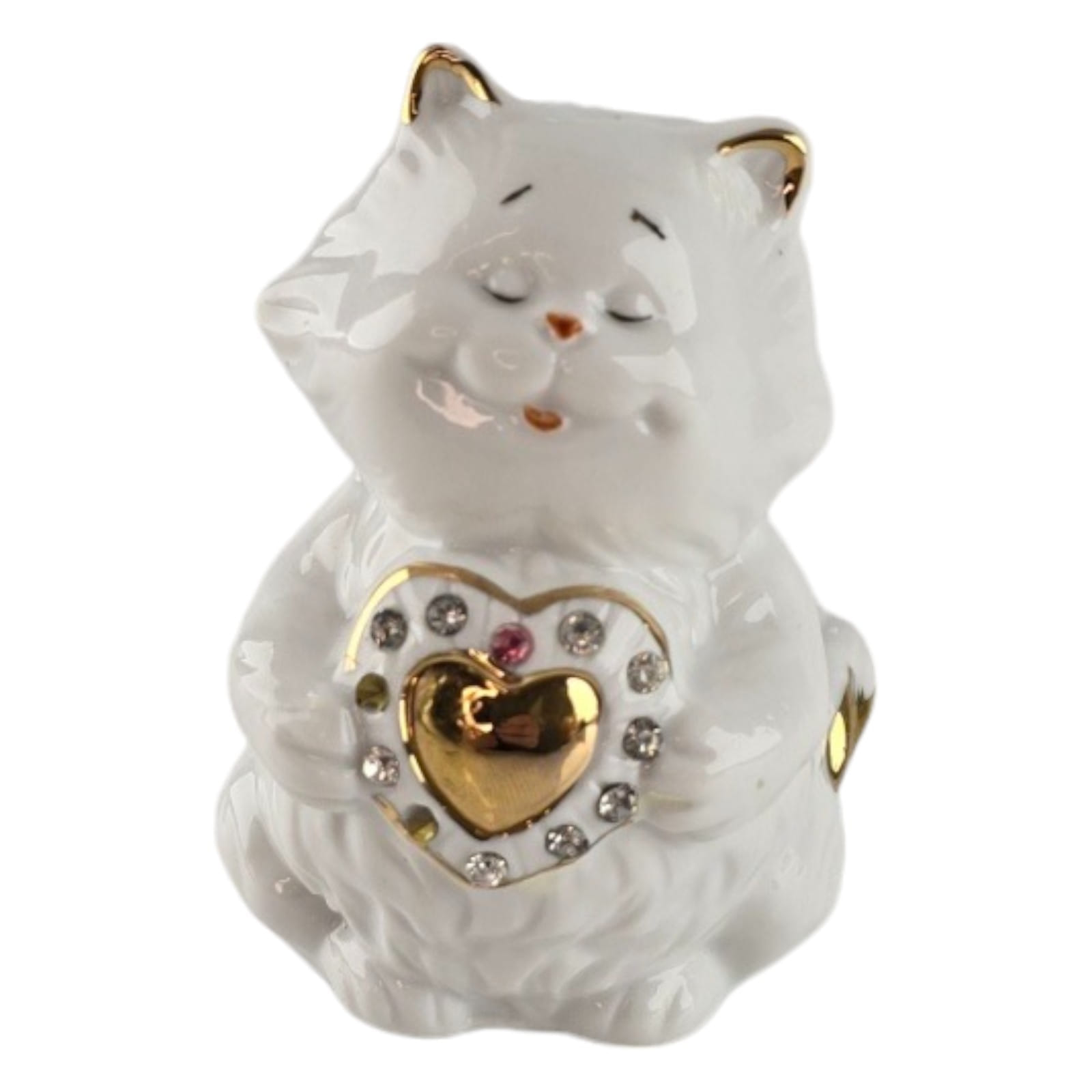 Кот с сердечком фарфор (10х7,5х6,5 см)