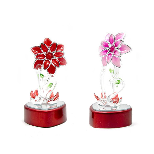 Лебеди с цветком хрустальные с подсветкой (12х6,5х6 см)