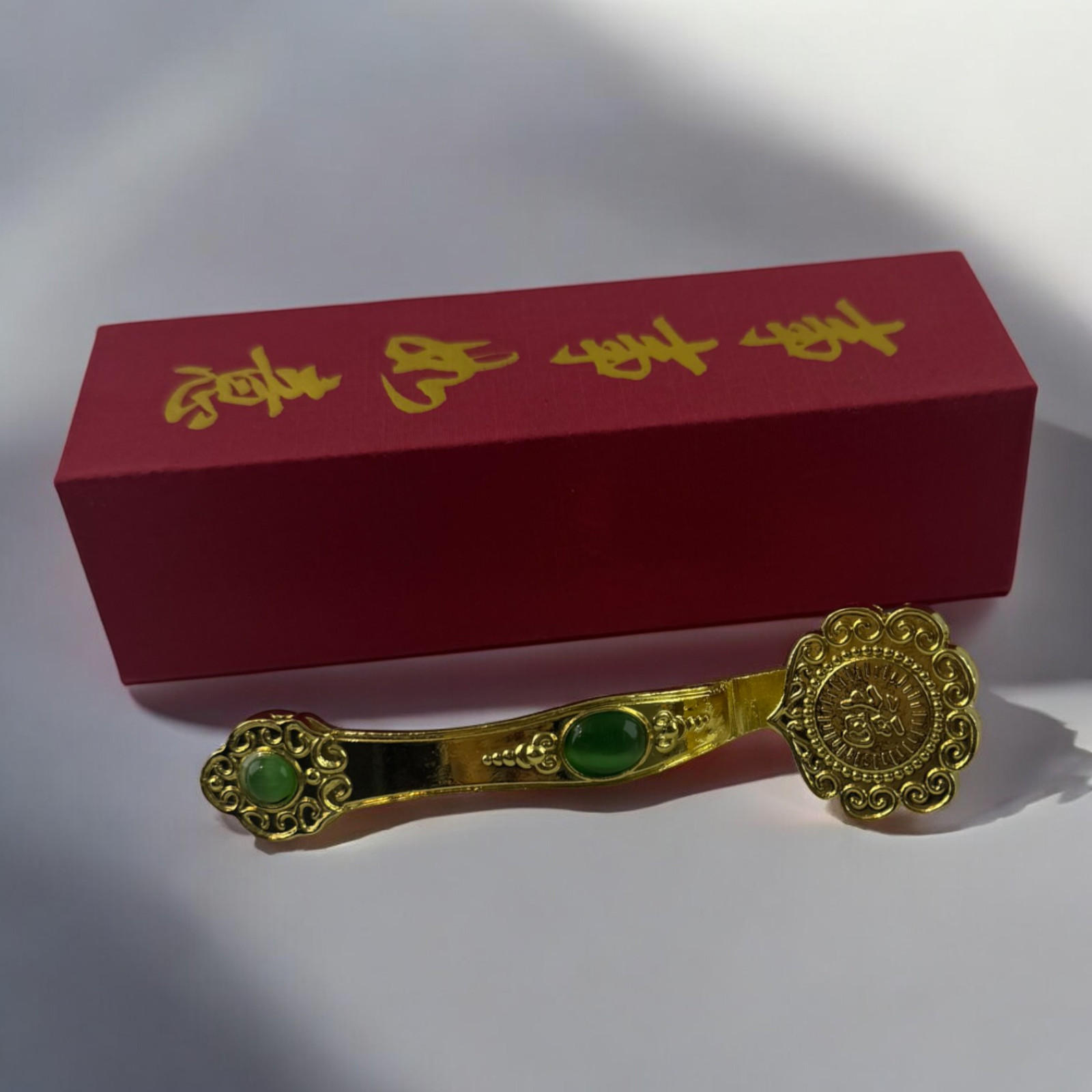 Погрузитесь в мир магии и загадочности с этим элегантным магическим жезлом. Изящно изогнутая форма и изысканные орнаменты придают жезлу особую роскошь, а яркие изумрудные вставки создают ощущение магической силы, будто бы накопленной в каждом камне. Жезл выполнен из прочного металла с золотистым покрытием, что добавляет ему дополнительный блеск и шарм. Идеальный выбор для ритуалов, тематических мероприятий или в качестве коллекционного предмета, способного стать ярким акцентом в любой обстановке.