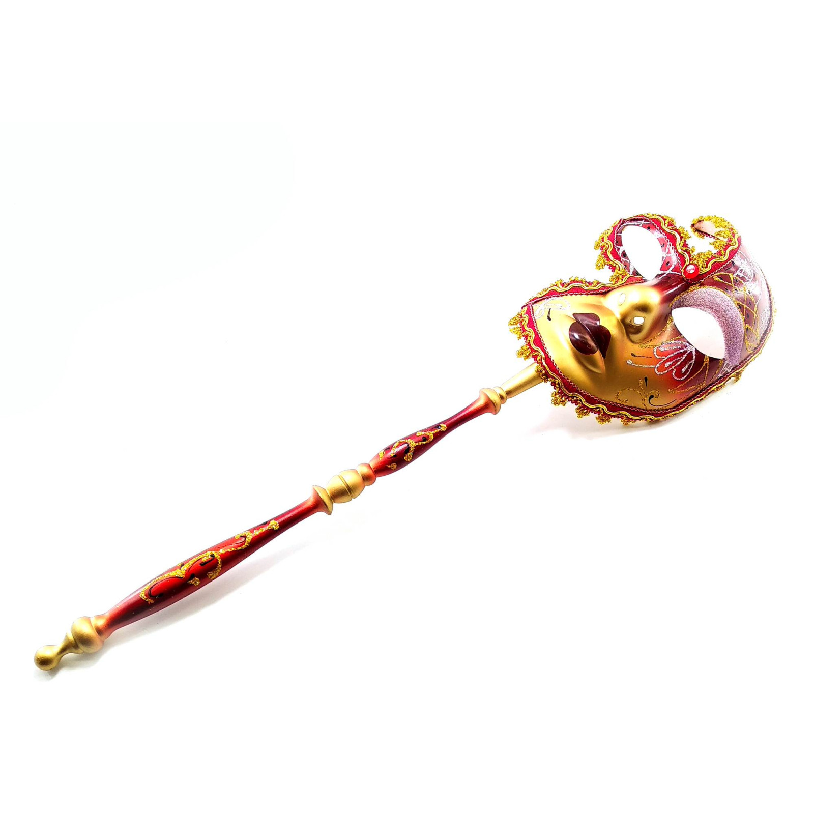 Маска венецианская с ручкой бордовая (47х13х6,5 см)