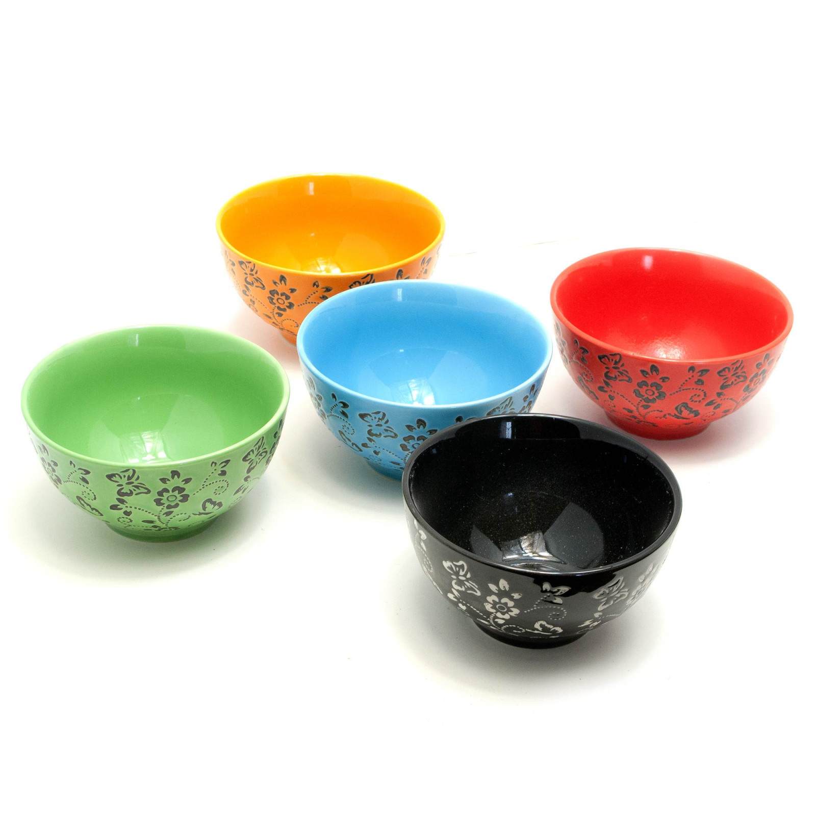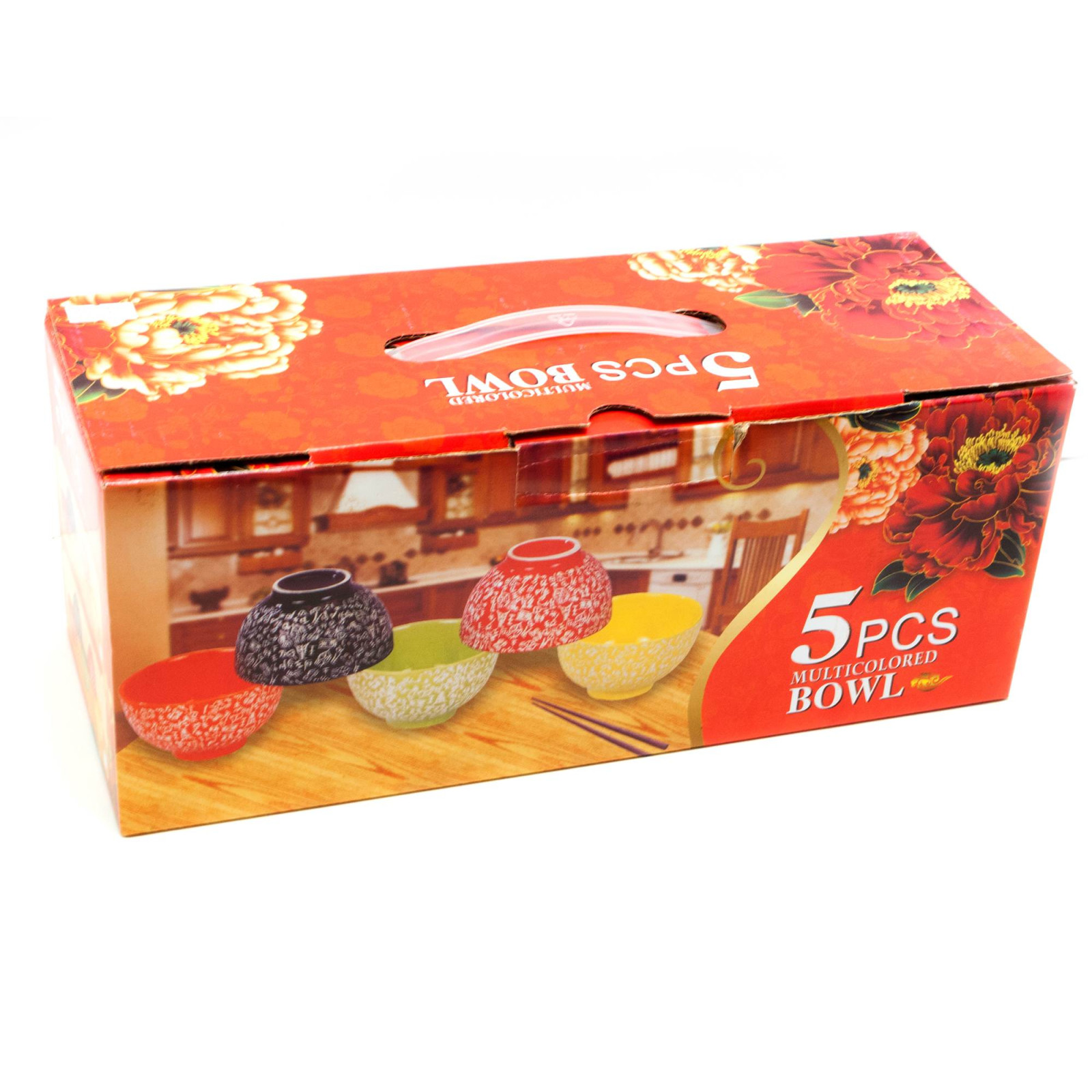 Миски керамические "Цветы с Бабочками"(набор 5 шт) (h-6 d-11,5 см упаковка 31х12х12,5 см)