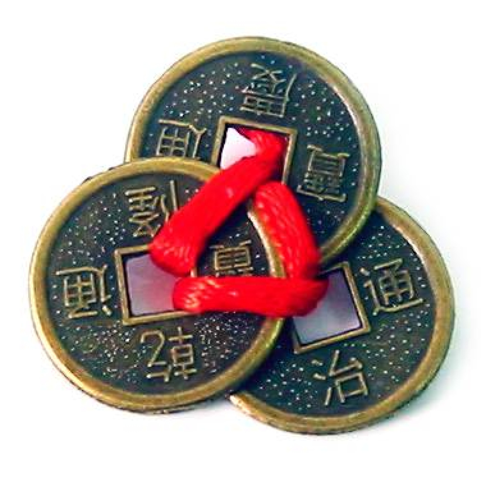 3 монеты, связанные вместе красной нитью, означают единство человека с небом и землей. Для привлечения богатства используют 3 связанные китайские монетки, которые символизируют одновременно 3 источника: заработанное, пришедшее извне и неожиданное богатства.