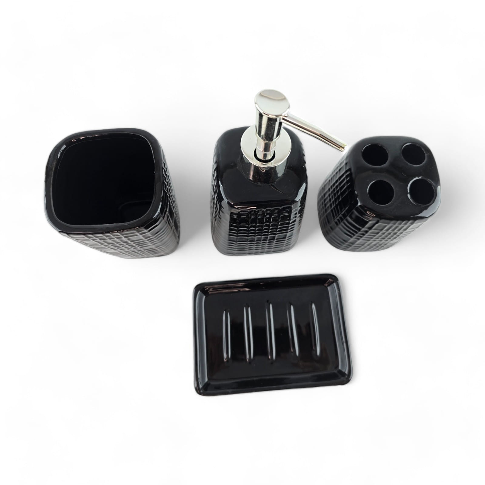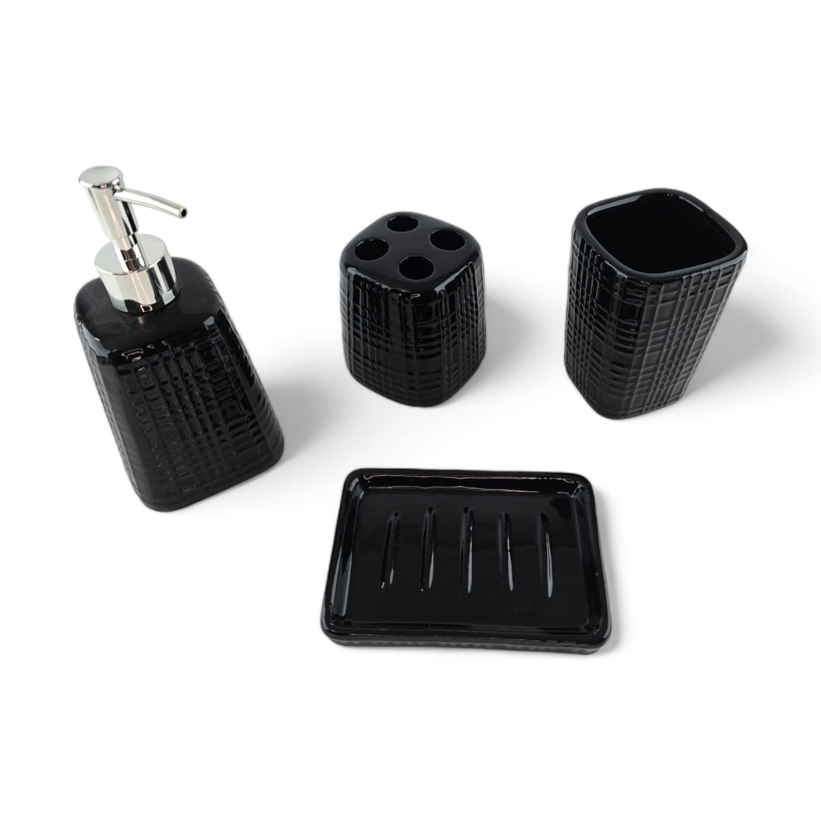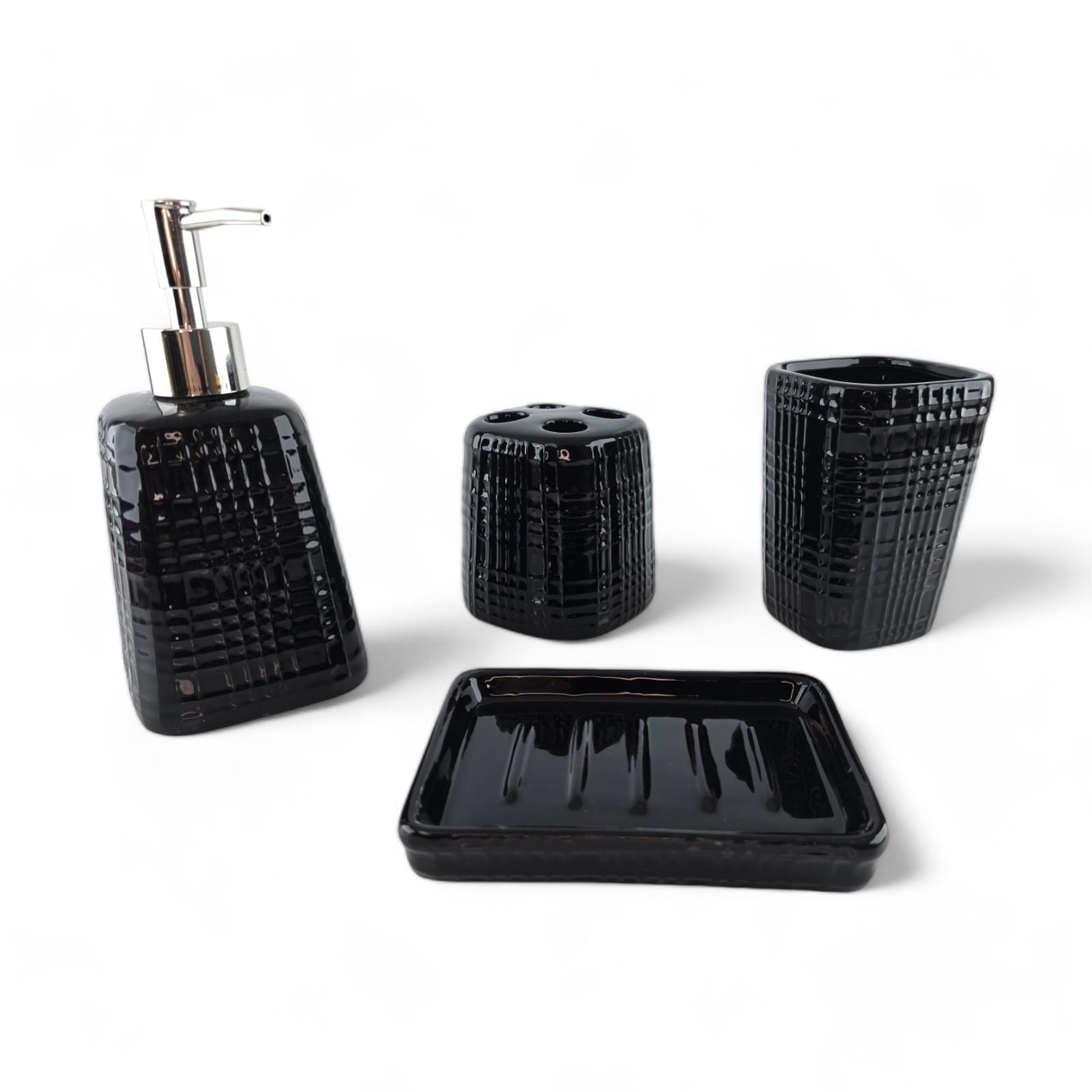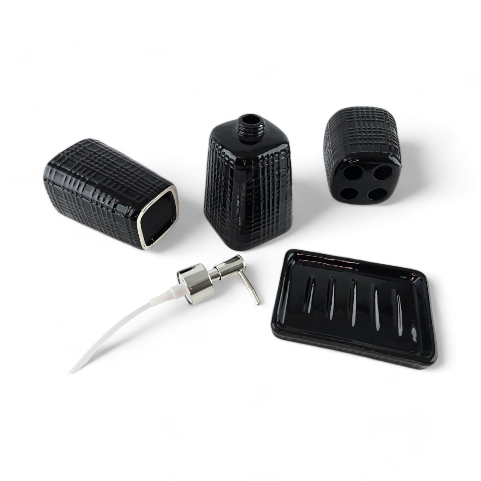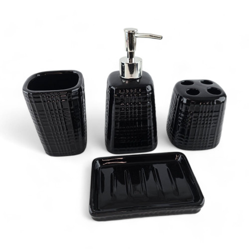 Керамический набор для ванной в черном цвете - это идеальное решение для придания вашей ванной комнате стиля и функциональности.