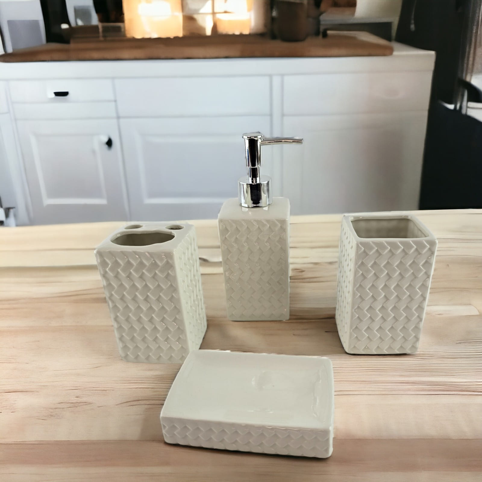 Набор для ванной керамический. Такой набор поможет красиво разместить аксессуары для ванной комнаты и украсит ее дизайн.