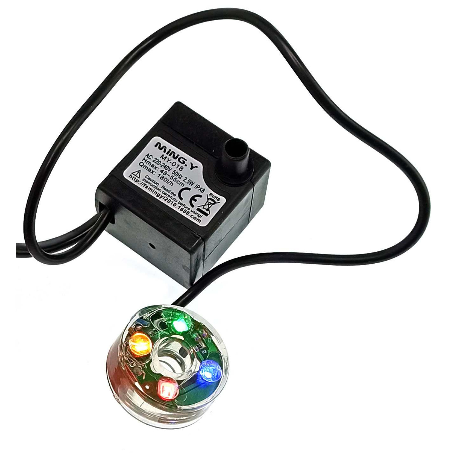 Насос для домашнего или офисного фонтана с цветной подсветкой