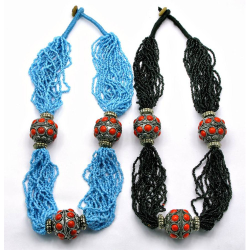 Ожерелье из бисера с металлическими вставками