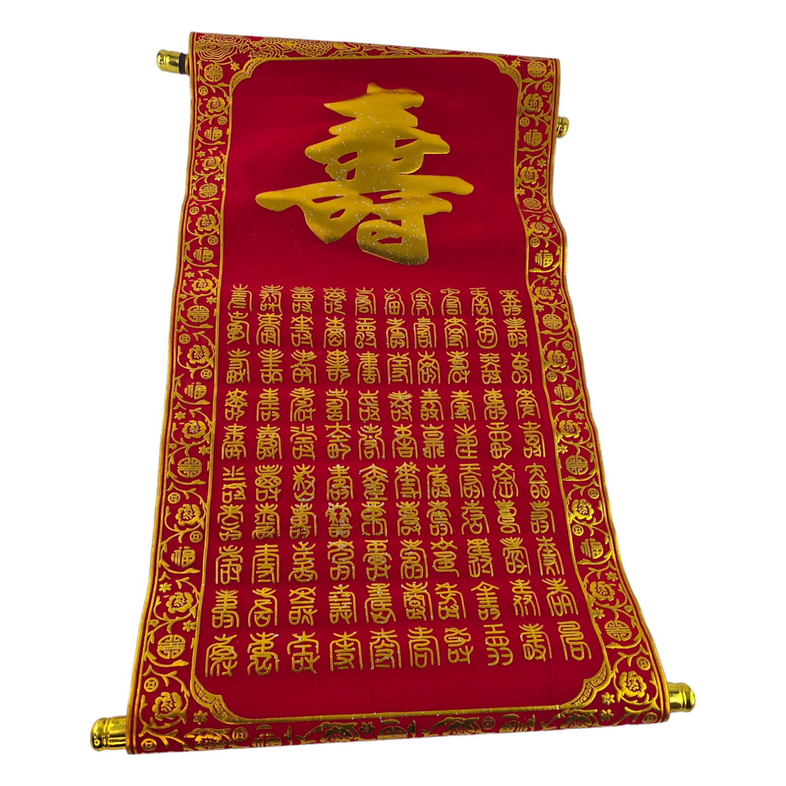 Это панно выполнено в глубоком красном оттенке, который символизирует стойкость и энергию жизни. Иероглифы, изысканно выведенные золотистым цветом, несут в себе мудрость и тайны веков, а их перевод означает "Долговечность" – напоминание о ценности времени и неувядающей силе духа.