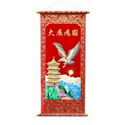 Панно красное "Орел, пагода, солнце" (80х30CM)