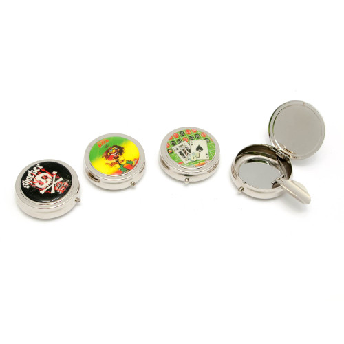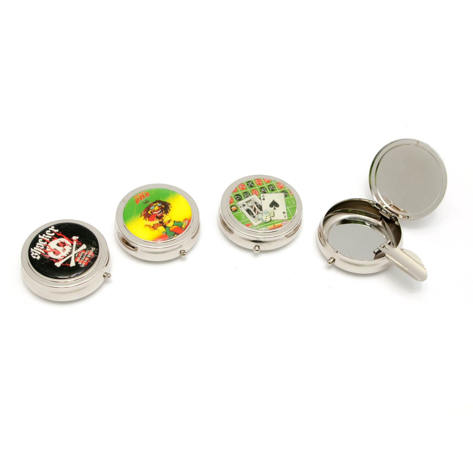 Пепельница карманная с рисунком металл (d-5 h-1.5 см)
