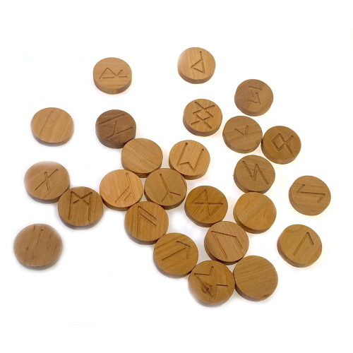 Характеристики Руны из ольхи резные круглые (d=31мм) покрыты льняным маслом с пчелиным воском