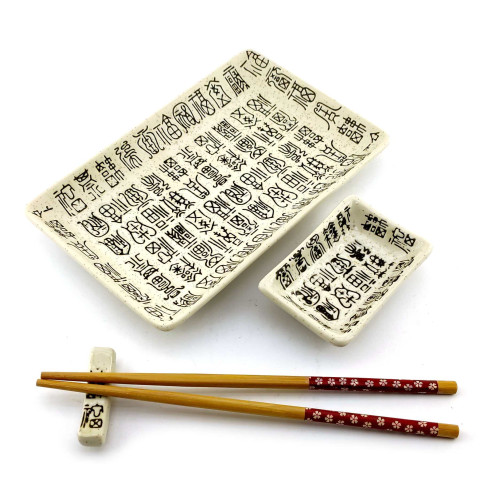 Описание Сервиз для суши "Иероглифы на белом фоне"(28х14 см)(1 персона)