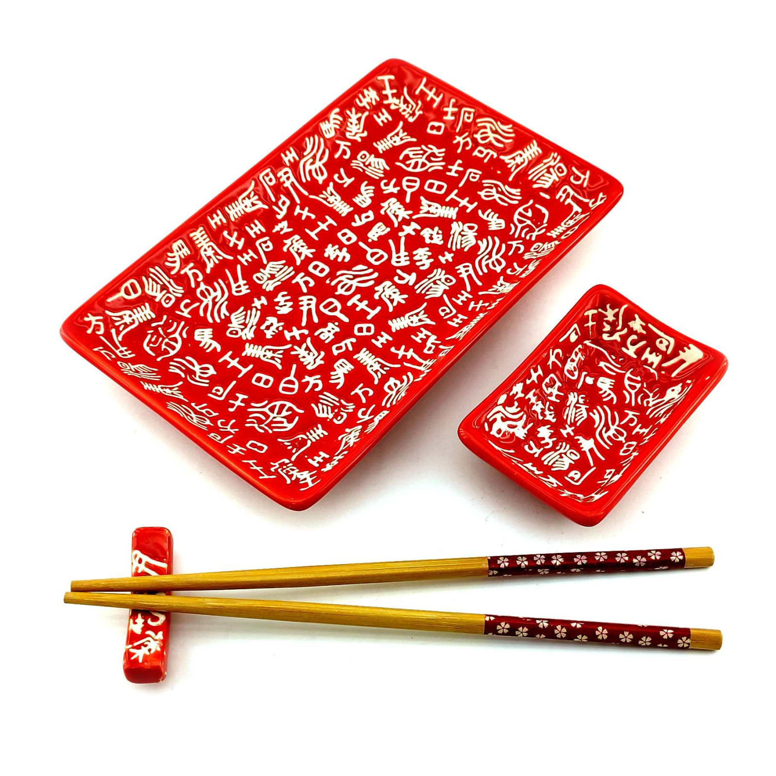 Описание Сервиз для суши "Иероглифы на красном фоне"(28х14 см)(1 персона)J