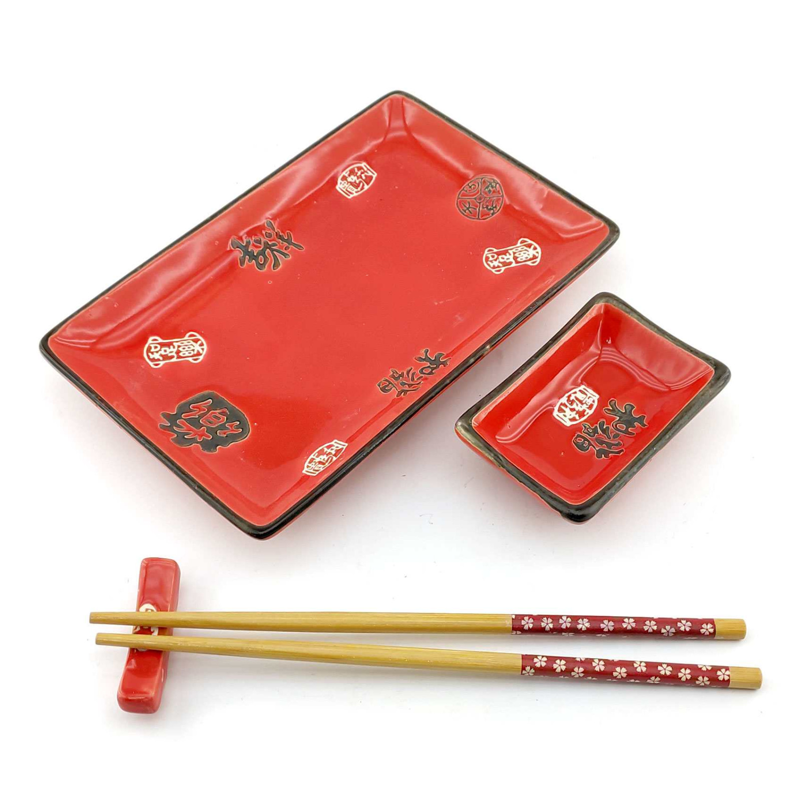 Характеристики Сервиз для суши "Иероглифы на красном фоне"(28х14 см)(1 персона)