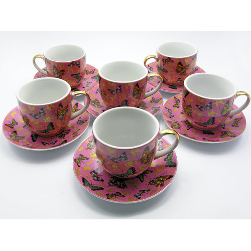 Сервиз фарфор (170мл)(6HPC1040-1) 6 чашек +6 блюдец "Бабочки " (h-7см., d-7,5см.)