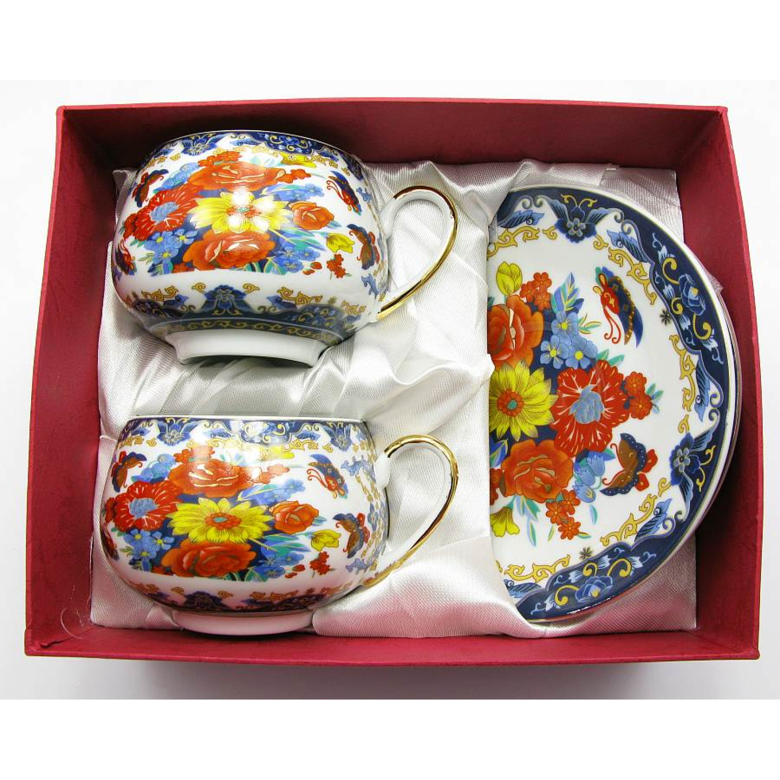 Сервиз фарфор (220 мл)(2BCS1020) 2 чашки +2 блюдца "Цветы" (h-6,5см., d-7,5см.)