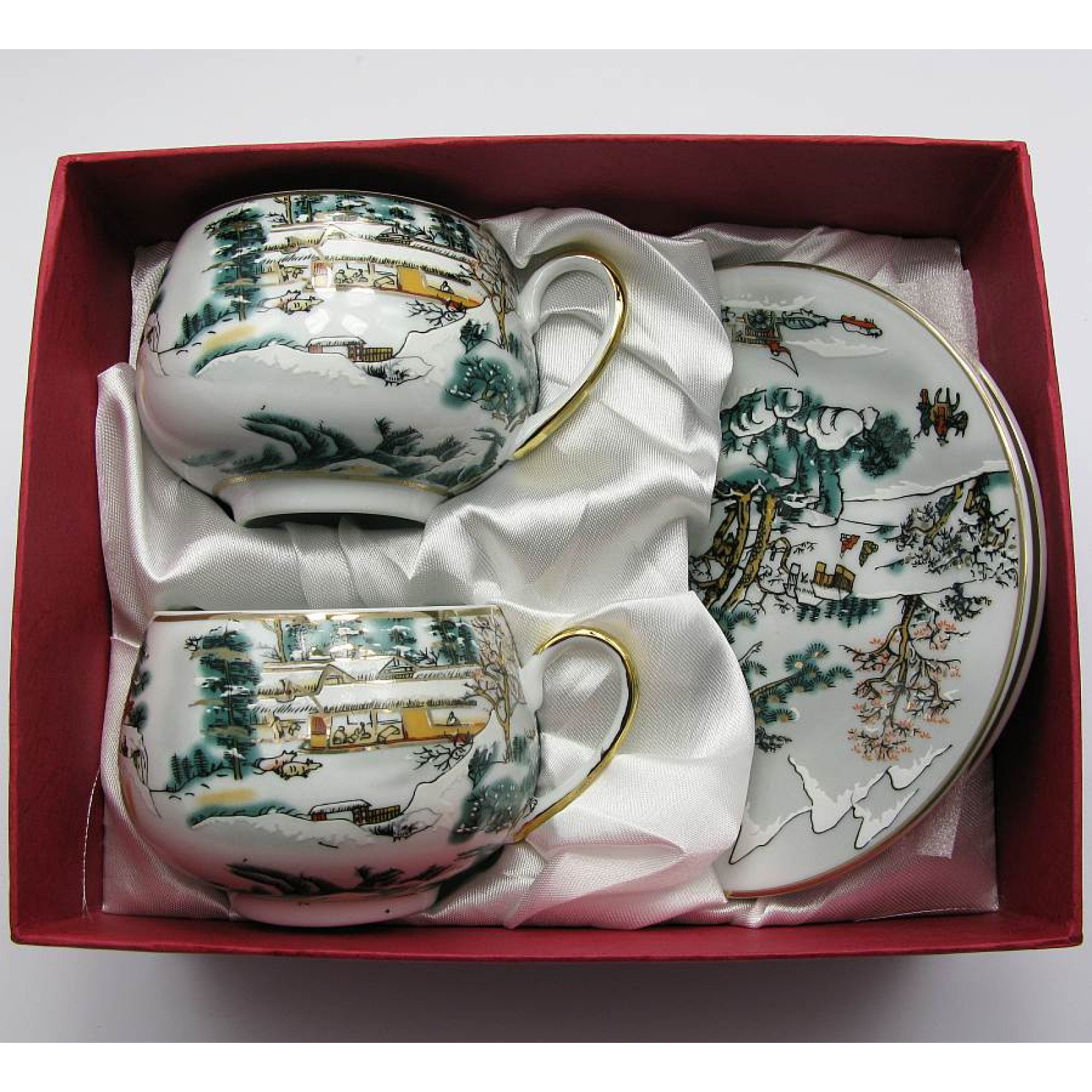 Сервиз фарфор (220 мл)(2BCS97) 2 чашки +2 блюдца "Зимний пейзаж" (h-6,5см., d-7,5см.)