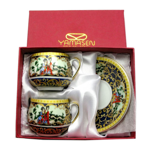 Сервиз фарфор (2SCS108-5) 2 чашки +2 блюдца "Гейши" ((110 мл)(h-5,2см, d-5,3см, блюдце d-11см)