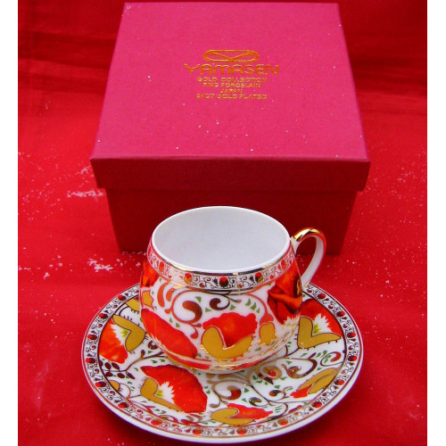 Сервиз фарфор (SCS1043) 1 чашка+1 блюдце "Маки" (110 мл)(h-5,2см, d-5,3см, блюдо d-11см)