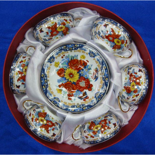 Сервиз круглый фарфор (70мл.)(6CCS1020) "Цветы" (h-4см, d-7,3см,d блюдца 11 см)
