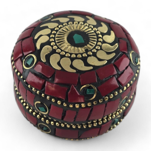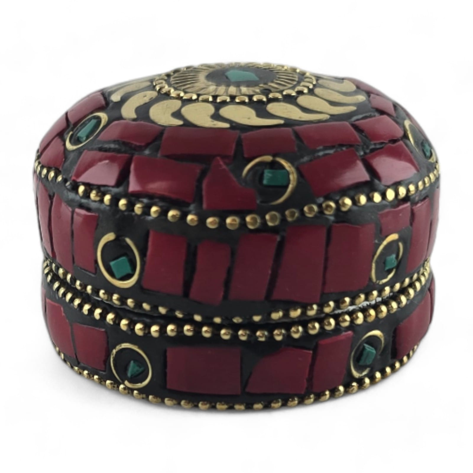 Шкатулка металлическая с кораллами и бирюзой ( h-3,2; d-4,7 см)