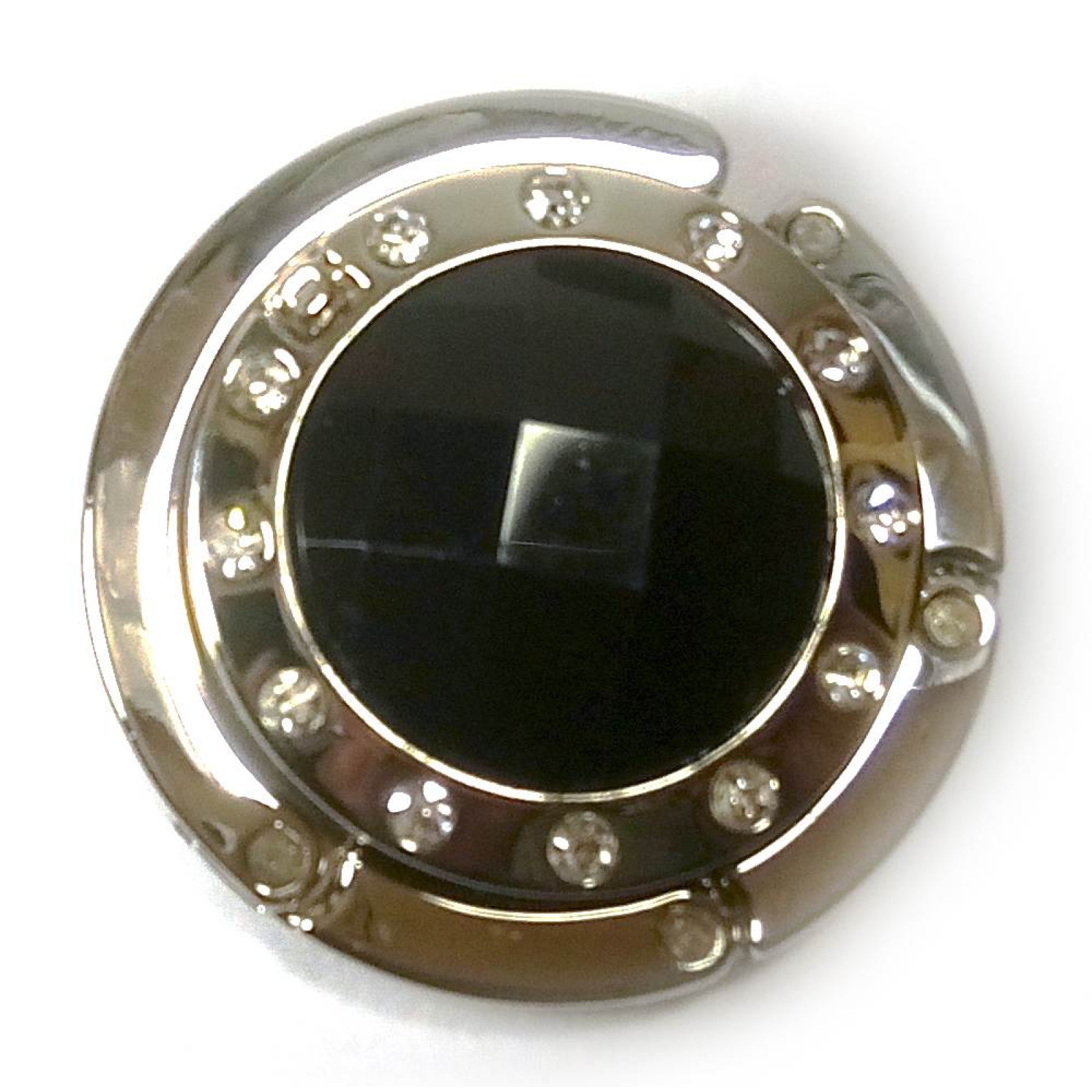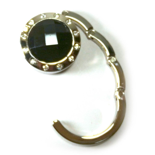 Сумкодержатель для женской сумочки "Кристалл черный" с зеркальцем (d-4,5 см)