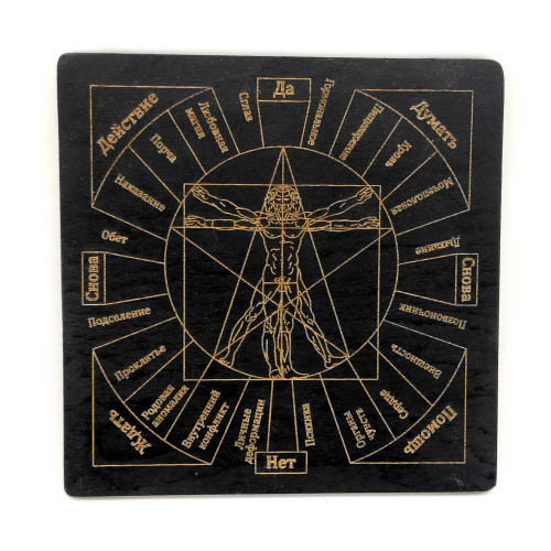 Описание Таблица для работы с маятником "Магические воздействия" темная (18х18х0,4 см)