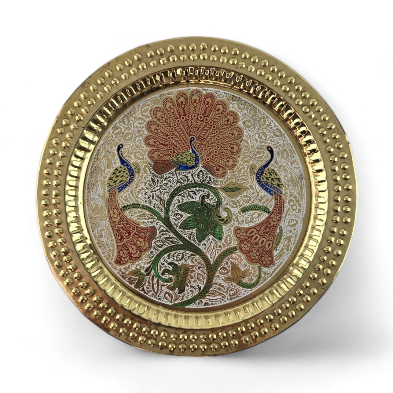 Наши настенные бронзовые тарелки – это не просто предметы интерьера, это источники вдохновения и эстетического наслаждения. Одна из них – тарелка с изображением трех великолепных павлинов, плавно распускающих свои перья на красном фоне.