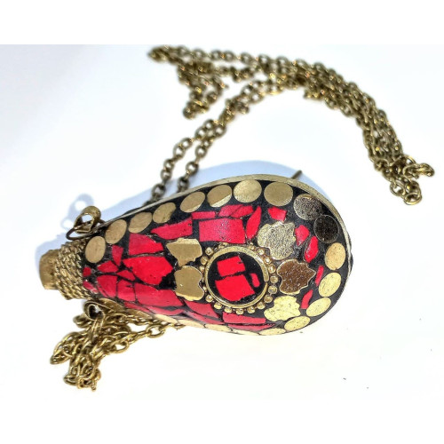Опис Аромакулон бронзовий інкрустований латунню та коралами (5,5х4,5х2 см)