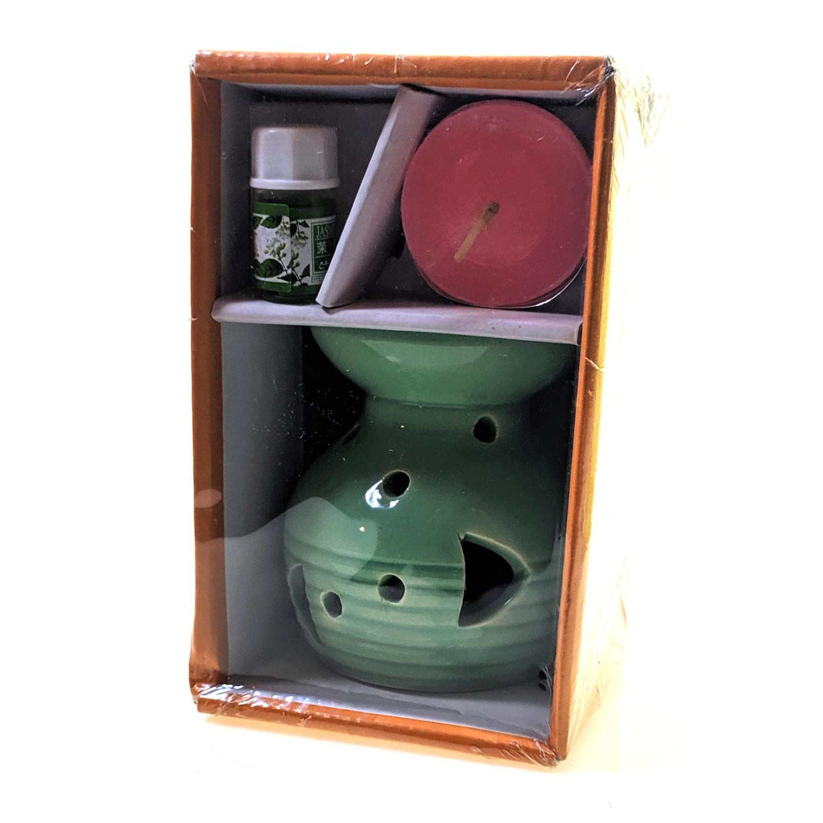 Аромалампа керамічна, подарунковий набір зелена (12,5х8х7,5 см)