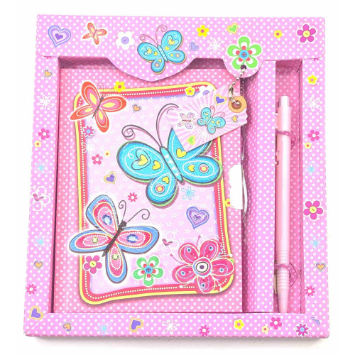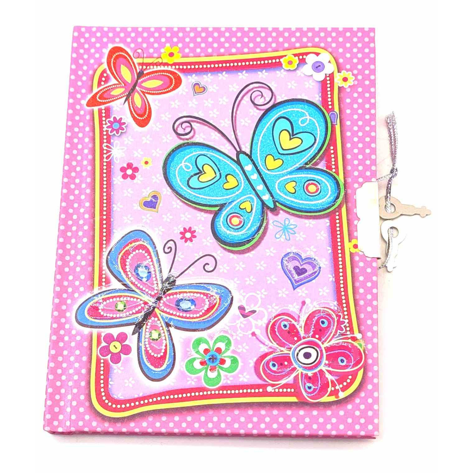 Блокнот із замком для дівчаток "Метелики" рожевий (2 ключі) (19,5х17,5х2 см)