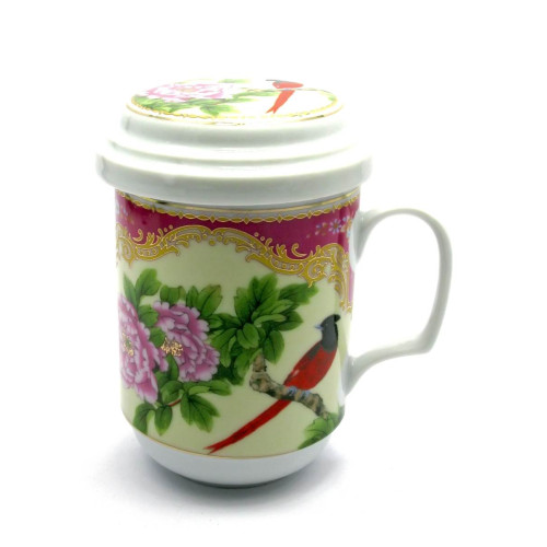 Чашка заварювальна з ситом (330мл.)(BFC1076) "Птах і квітка" (h-13cм, d-7,5см)