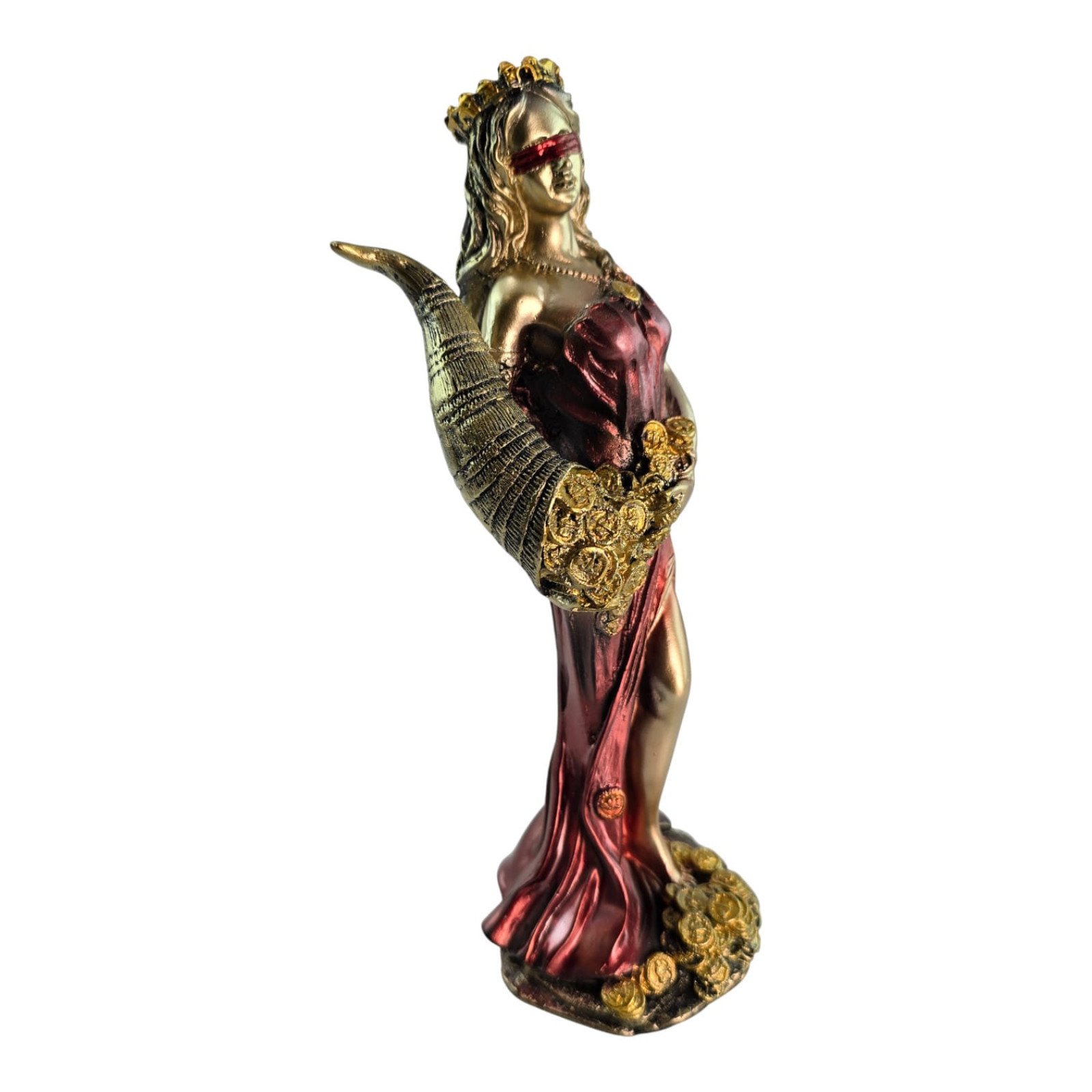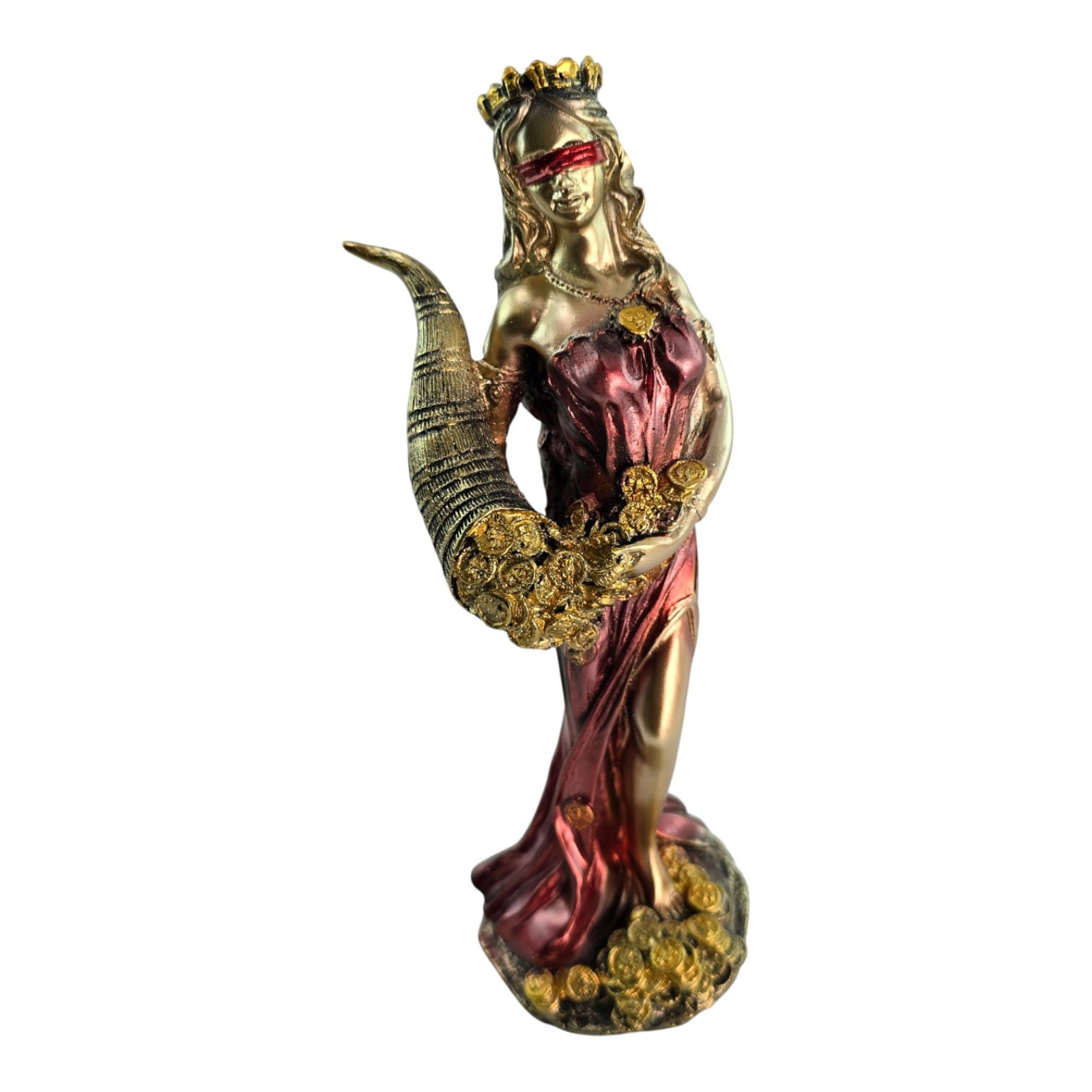 Фортуна - класичний символ удачі, достатку та процвітання. Статуетку ставлять на робочому столі, у касовій зоні чи домашньому кабінеті, щоб посилювати намір на прибуток, утримувати фокус на цілях та налаштовуватись на успіх. Ріг достатку з «монетами» символізує безперервний потік ресурсів, тому фігурка – частий вибір як талісман для бізнесу та подарунок підприємцю, бухгалтеру чи новосілля. Фарбування з металевим блиском.