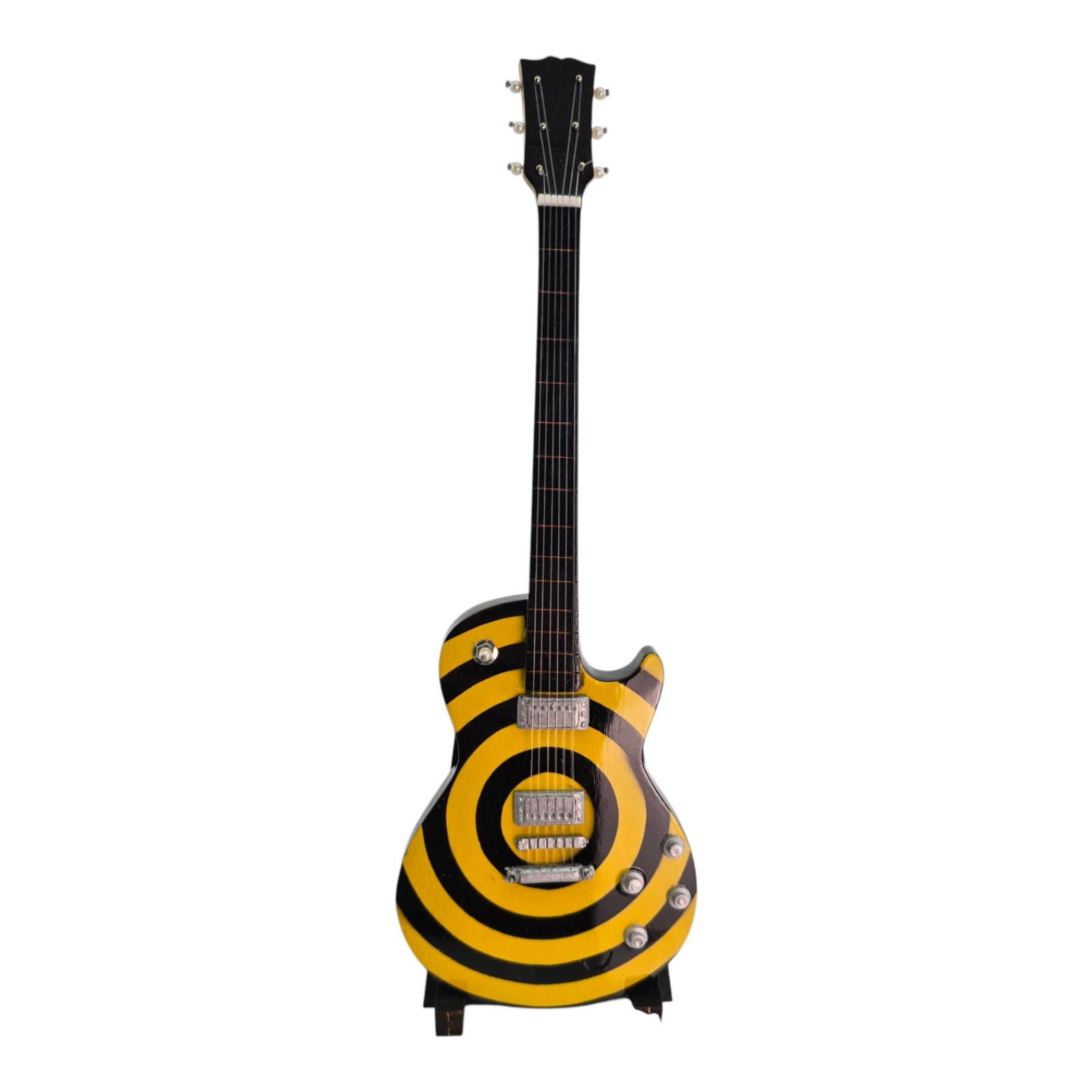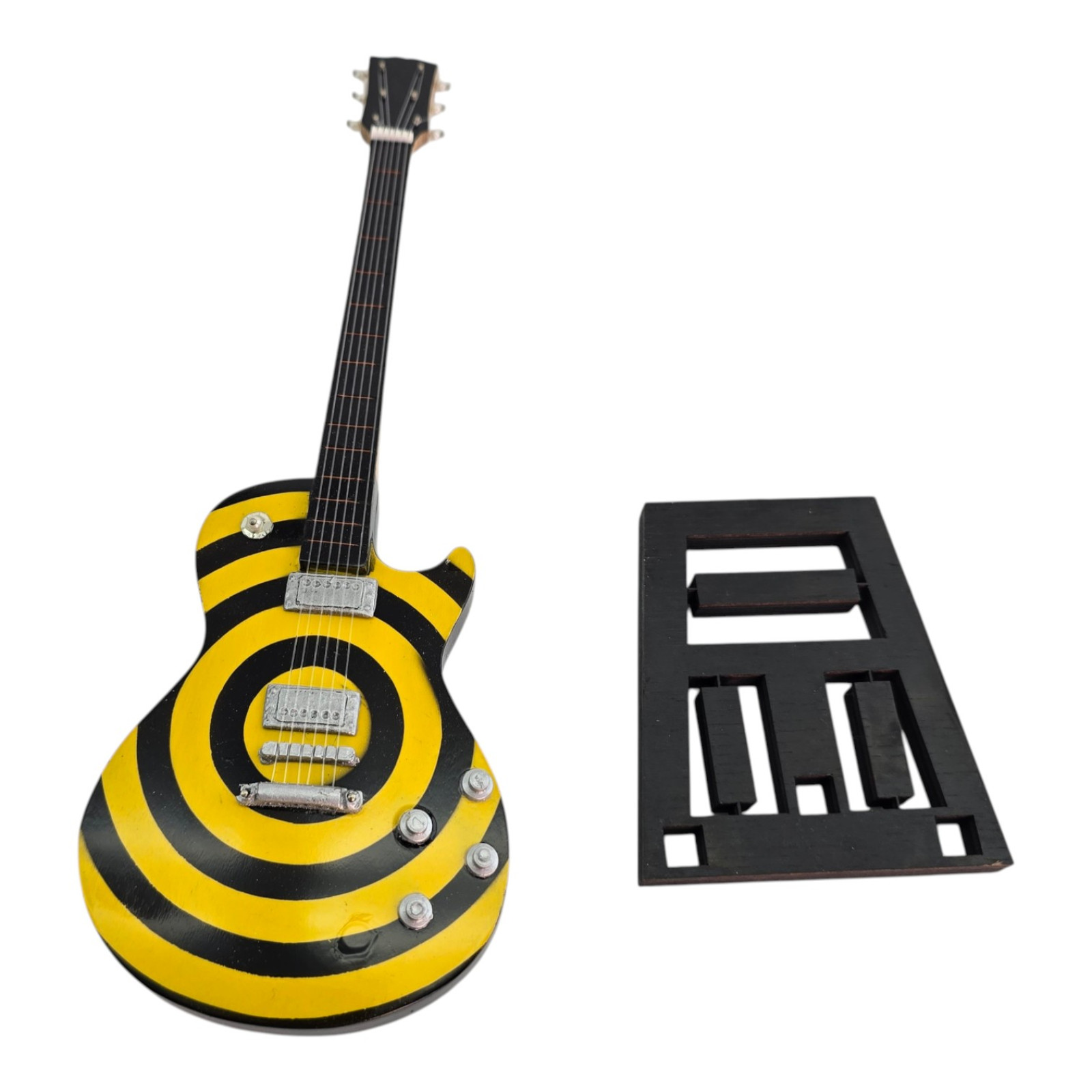 міні гітара, декоративна гітара, гітара Zakk Wylde, Zakk Wylde Bullseye, bullseye гітара, мета гітара, жовто-чорна гітара, гітара з колами, гітара принт, гітара декор, мініатюрна гітара, декор, декор, декор гітара, гітара Індонезія, міні електрогітара, гітара для декору, гітара 24 см, zakk wylde міні гітара