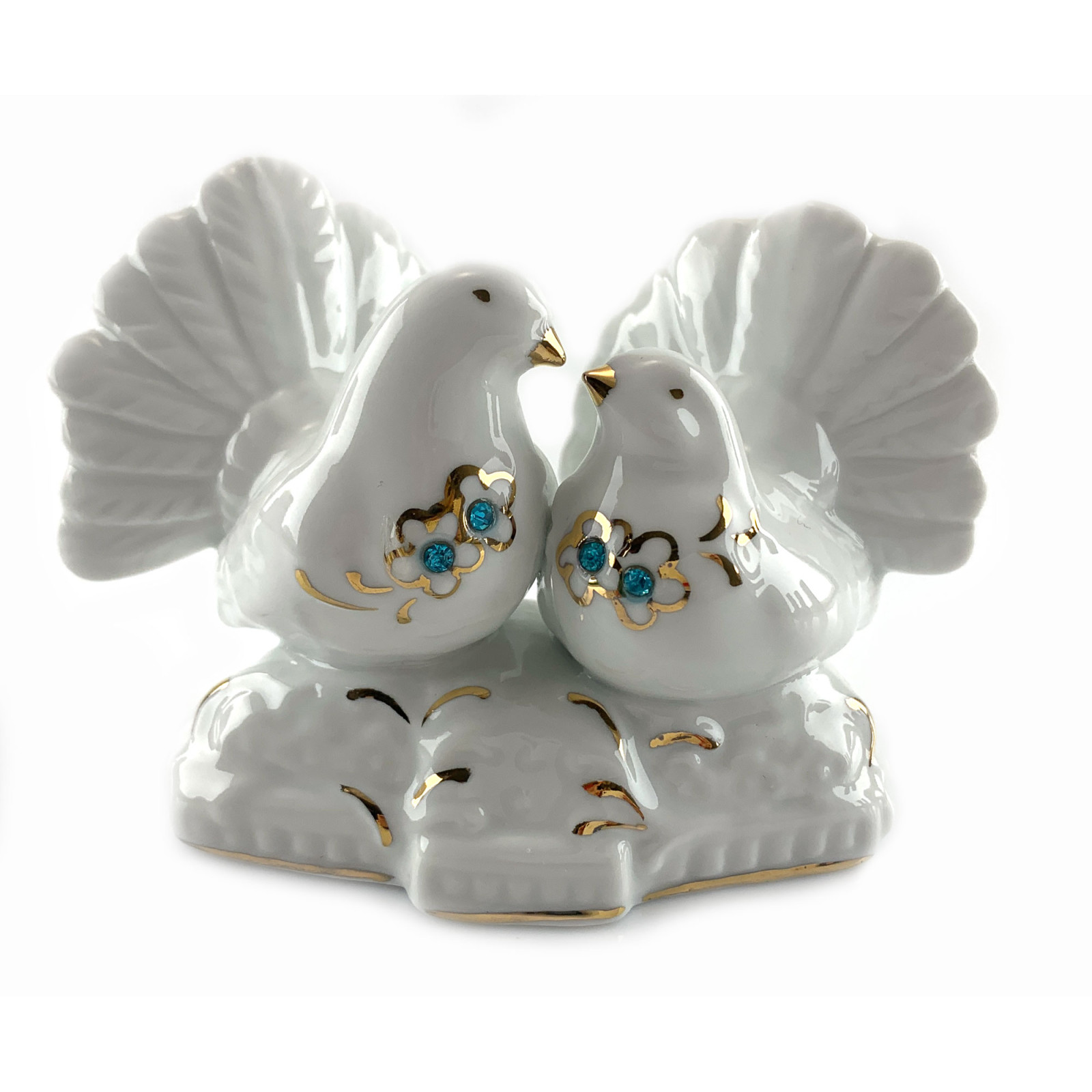 Ці білі голуби з кераміки приносять ноту елегантності та розкоші у ваш інтер'єр. Їх витончений дизайн і бірюзові стрази надають їм неперевершену красу та блиск. Кожна деталь цієї статуетки виконана з винятковою ретельністю та увагою до деталей. Висота 80 мм робить цю статуетку ідеальним аксесуаром для стелажів, комодів, полиць або будь-якої іншої поверхні у вашому будинку. Вони можуть стати прикрасою для спеціальних подій або особливих моментів. Ці голуби – це не лише гарний предмет декору, а й символ миру, надії та гармонії. Вони можуть служити як нагадування про важливі цінності у вашому житті. Дозвольте цим елегантним та вишуканим голубам додати нотку розкоші та краси у вашому інтер'єрі та створити затишну атмосферу навколо вас.