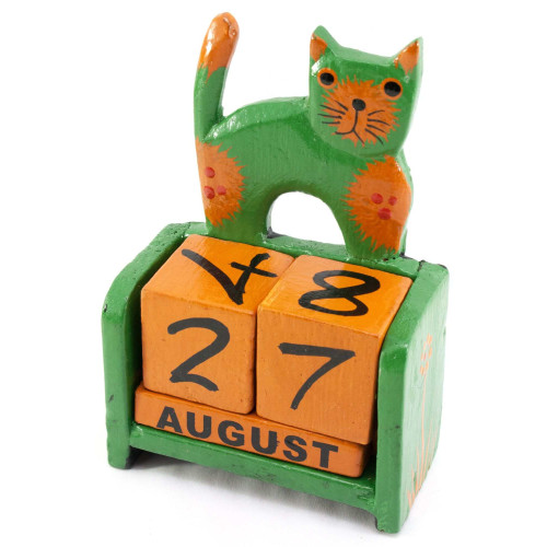 Календар настільний "Кіт" дерево зелене (14,5х10х5,5 см)