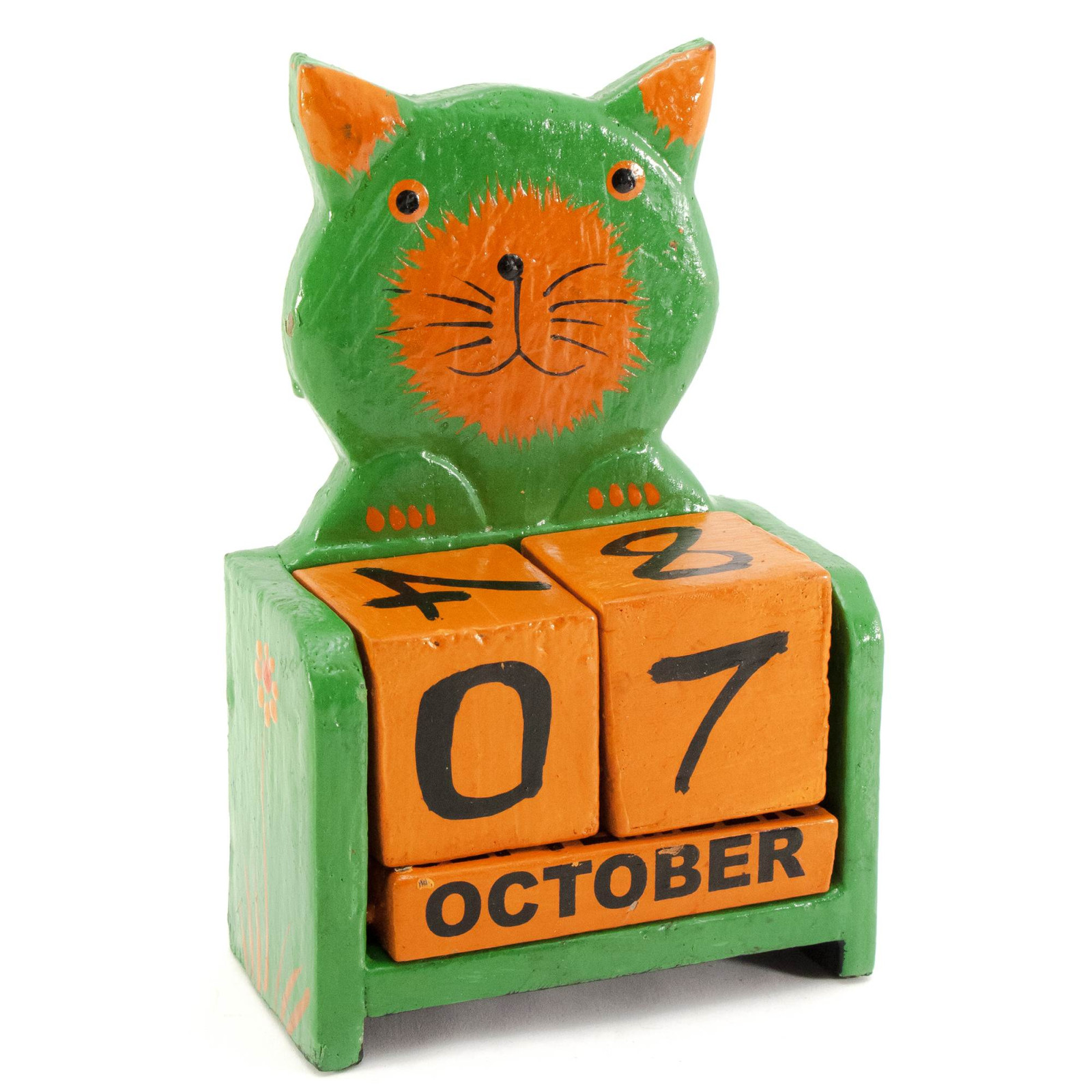 Календар настільний "Кіт" дерево зелене (15х10х5 см)