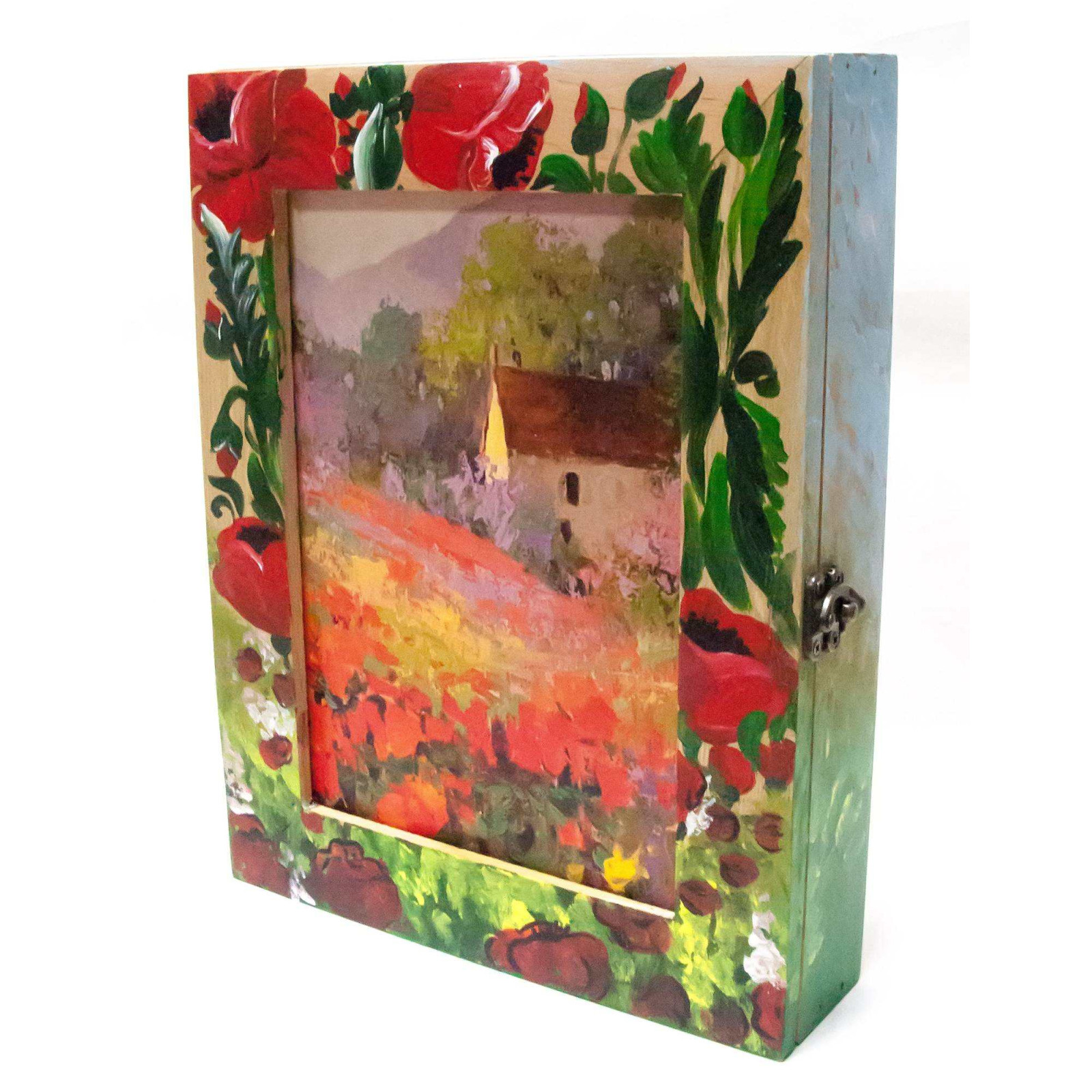 Опис Ключниця "Маки" масив дерева розписано вручну (25х19х6, 5 см)