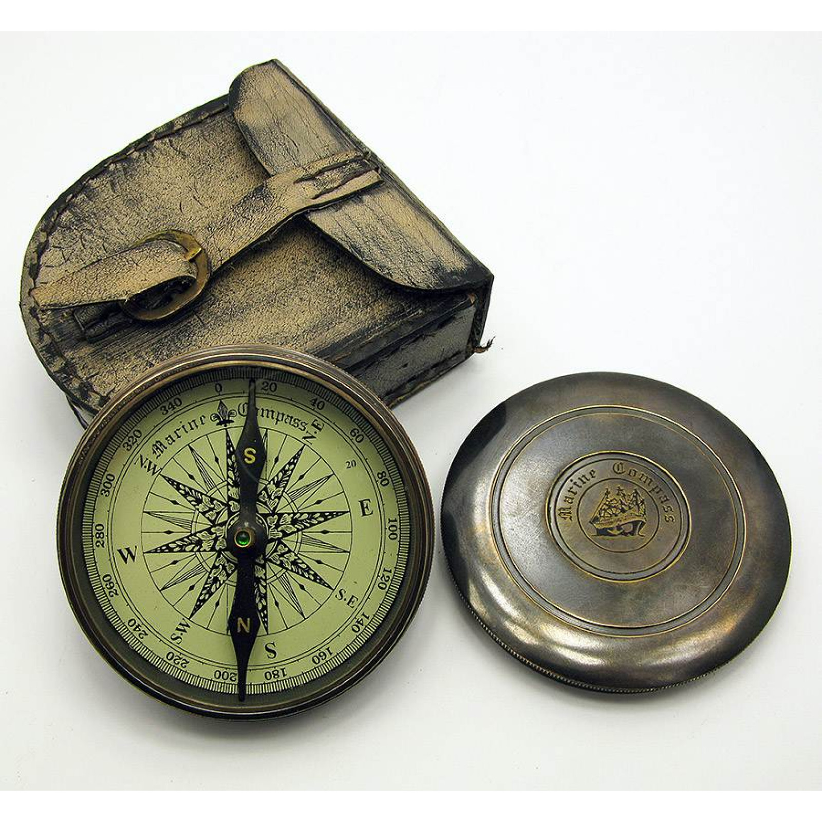 Компас бронзовий у шкіряному чохлі (d-8, h-2 см)